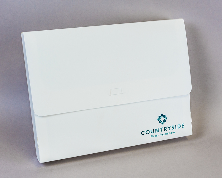 Made in white p/prop. Creased & die cut to shape.Outside screen printed in Green: 'COUNTRYSIDE Places People Love'.